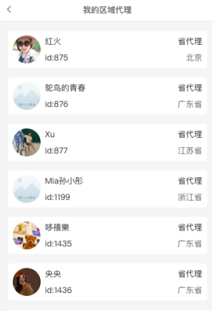 2) 点击人数跳转到区域代理列表,查看招商员的直推区域代理