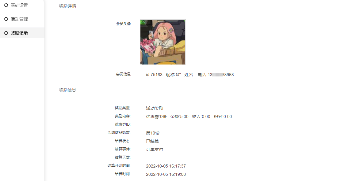 6, 活动结算通知,当到了结算时间后,会员获得奖励,给会员发送奖励消息通知。