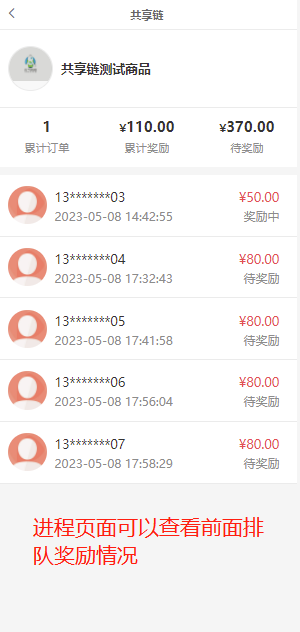 共享链:用户在商城购买商品或者门店消费,获得消费金额百分比的待返权益,当后续用户消费后,提取消费金额的百分比按顺序返还给拥有待返权益的会员。 (需订单完成后获得奖励)