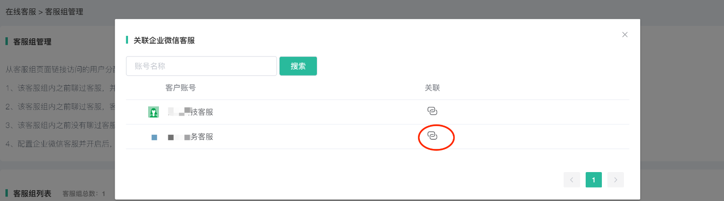 选择一个需要的企业微信客服,点击关联。